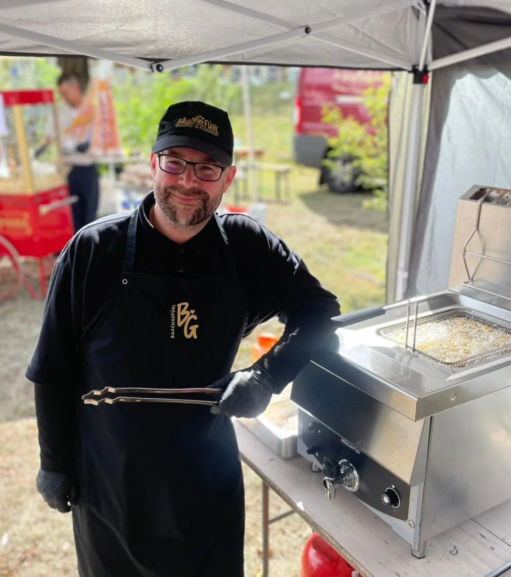In den letzten Jahren war ich vorwiegend in großen Unternehmen der Industrie beschäftigt und habe Abläufe in der Produktion koordiniert oder Produktionsanlagen bedient. Anfang 2021 habe ich – eher zufällig – den Grundstein für Bauchgefühl gelegt und bei Feiern für Freunde und Verwandte klassische Grillbuffets zubereitet. Aus dieser Erfahrung heraus ist dann Bauchgefühl entstanden mit der Idee, vor Ort und immer frisch die Gerichte zuzubereiten.
